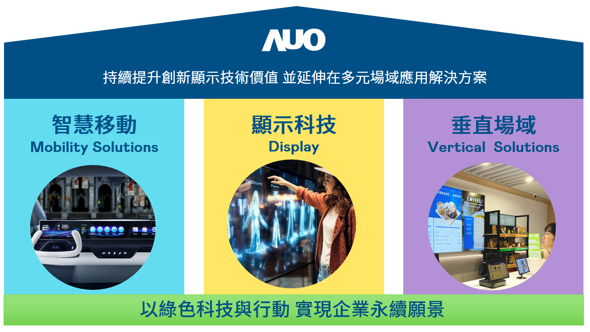 我們持續推動「雙軸轉型」,在精進顯示技術附加價值(Go Premium),與深化垂直市場應用(Go Vertical)的策略下,對應永利yl23411的優勢競爭力與趨勢,我們奠定顯示技術、智慧移動、垂直場域三大永續營運支柱,在顯示技術領域的根基之上,延伸布局多元場域應用解決方案。將先進顯示科技助力智慧移動及垂直場域發展,並以綠色科技與行動為實踐,在轉型之路上貫徹永續經營之願景。
